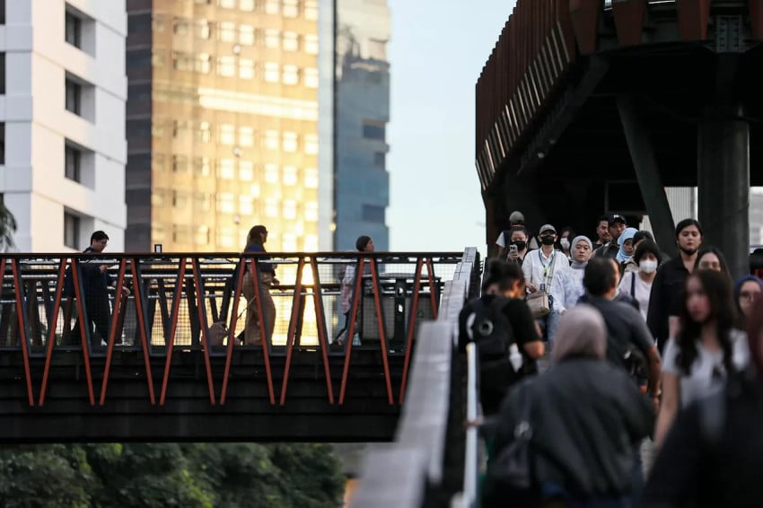 Para pekerja berjalan kaki Ke shelter transportasi umum Di jam pulang kantor Di Jakarta, Rabu (28/5/2025). FOTO/dok.SindoNews
