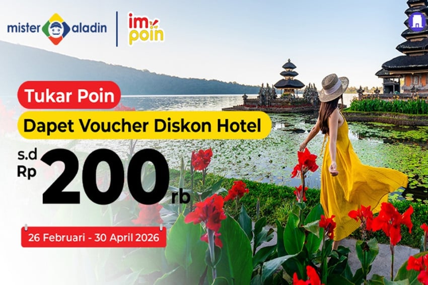 Promo ini berlaku Sebagai semua hotel dan metode pembayaransertatanpa batasan periode menginap, Supaya Anda dapat merencanakan perjalanan kapan saja sesuai kebutuhan. Periode promo berlangsung hingga30 April 2026, Supaya kesempatan ini dapat dimanfaatkan Sebagai Memperoleh Penghayatan menginap yang lebih hemat bersama Mister Aladin.