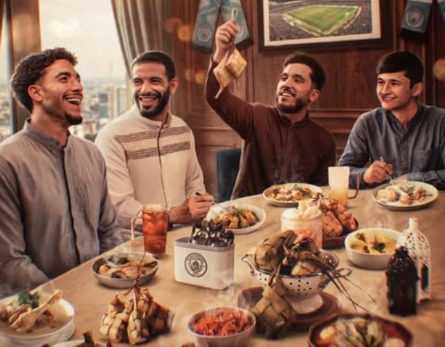 Tak ketinggalan, Manchester City memilih pendekatan desain yang Berkelas, memadukan warna biru khas Regu Bersama aksen tulisan emas serta ornamen bernuansa Islami.